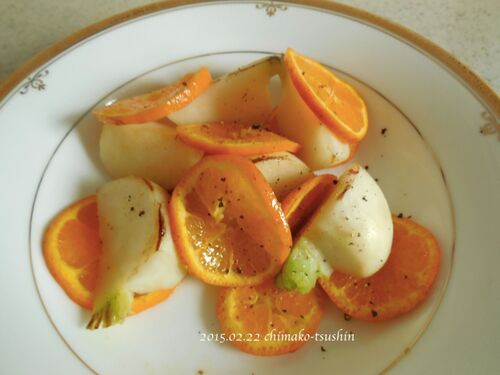 どんより、ですね。 今回は、夕べは献立紹介だけで済ませてしまったメニューの、レシピを紹介します。 絶品!カブと柑橘のソテー これはお肉のステーキや魚のソテーの付け合わせにも、お酒の肴にもできる便利な一品です。ワインのおつまみに、これとブルーチ…